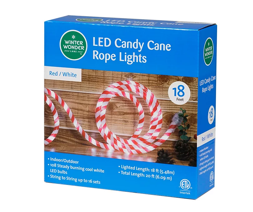 Add scrumptious lighting to any holiday display using this LED rope light from Winter Wonder Lane! The posable design is decorated in red and white candy cane-like stripes as it illuminates from steady burning cool white LED lights. Use this light alone or connect it to up to 16 sets for an even grander Christmas candy land look!