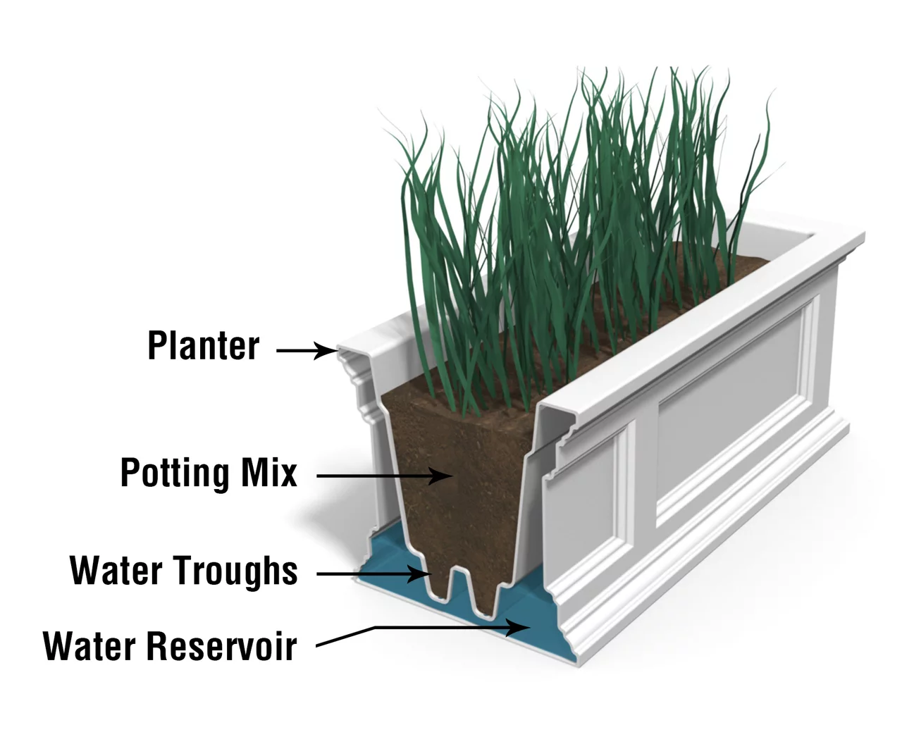 Brighten up the exterior of your home by adding color and beauty with the Fairfield window box. This durable construction offers a low maintenance solution and cleans with just a simple rinse of a garden hose. And with its built-in water reservoir – which encourages healthy plant growth by allowing plants to practically water themselves – and its high grade polyethylene material, this window box is a functional, long-lasting and stylish accent for your home.
