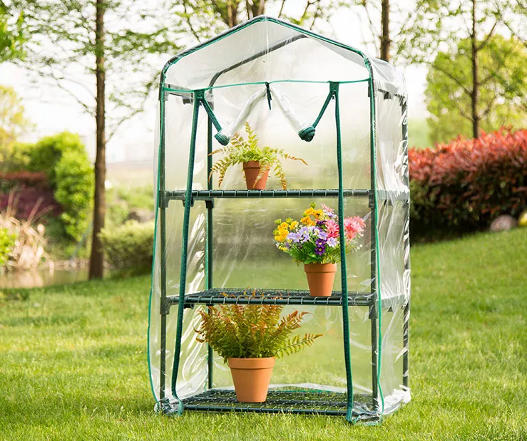 - Mini backyard greenhouse with 3 tiers