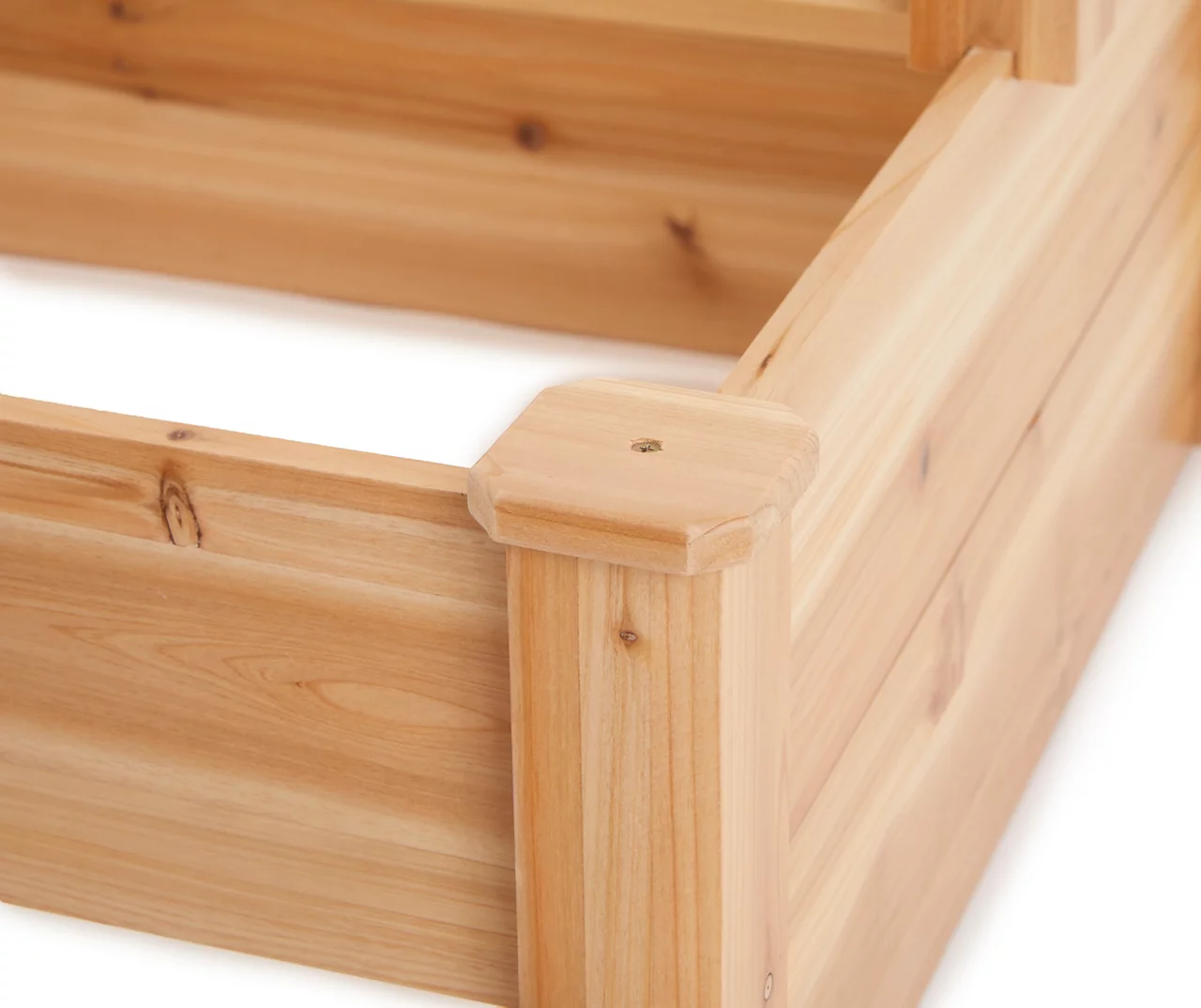 Stack and grow greenery and more with these tiered raised garden beds! Made of durable fir wood, each box is designed with a different depth for growing plants and vegetables with varying root lengths. Stack the planters together or lay each section out in a line for all your growing garden needs.