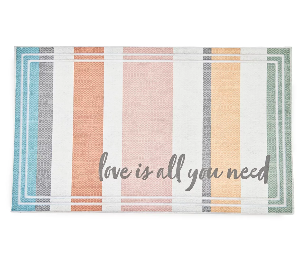 Greet guests with the welcoming warmth of this sturdy polyester doormat featuring a durable recycled rubber backing. The fabric front features a pastel color block theme on a multi-level surface that helps to trap dirt to keep your entryways cleaner.