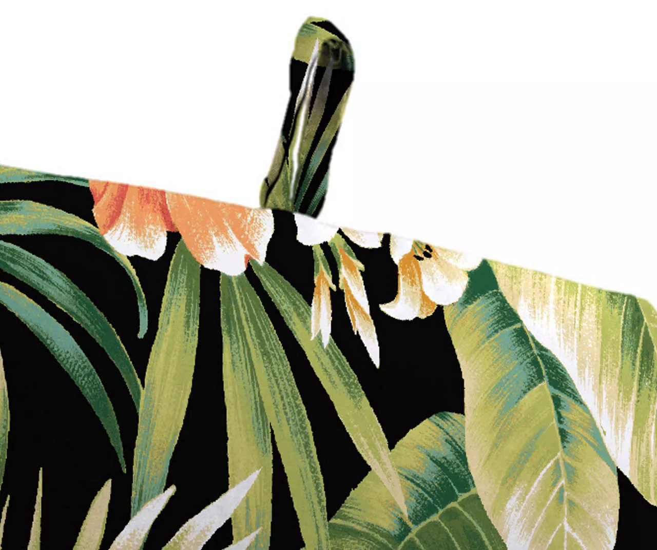- Black background with tropical floral and leaf pattern