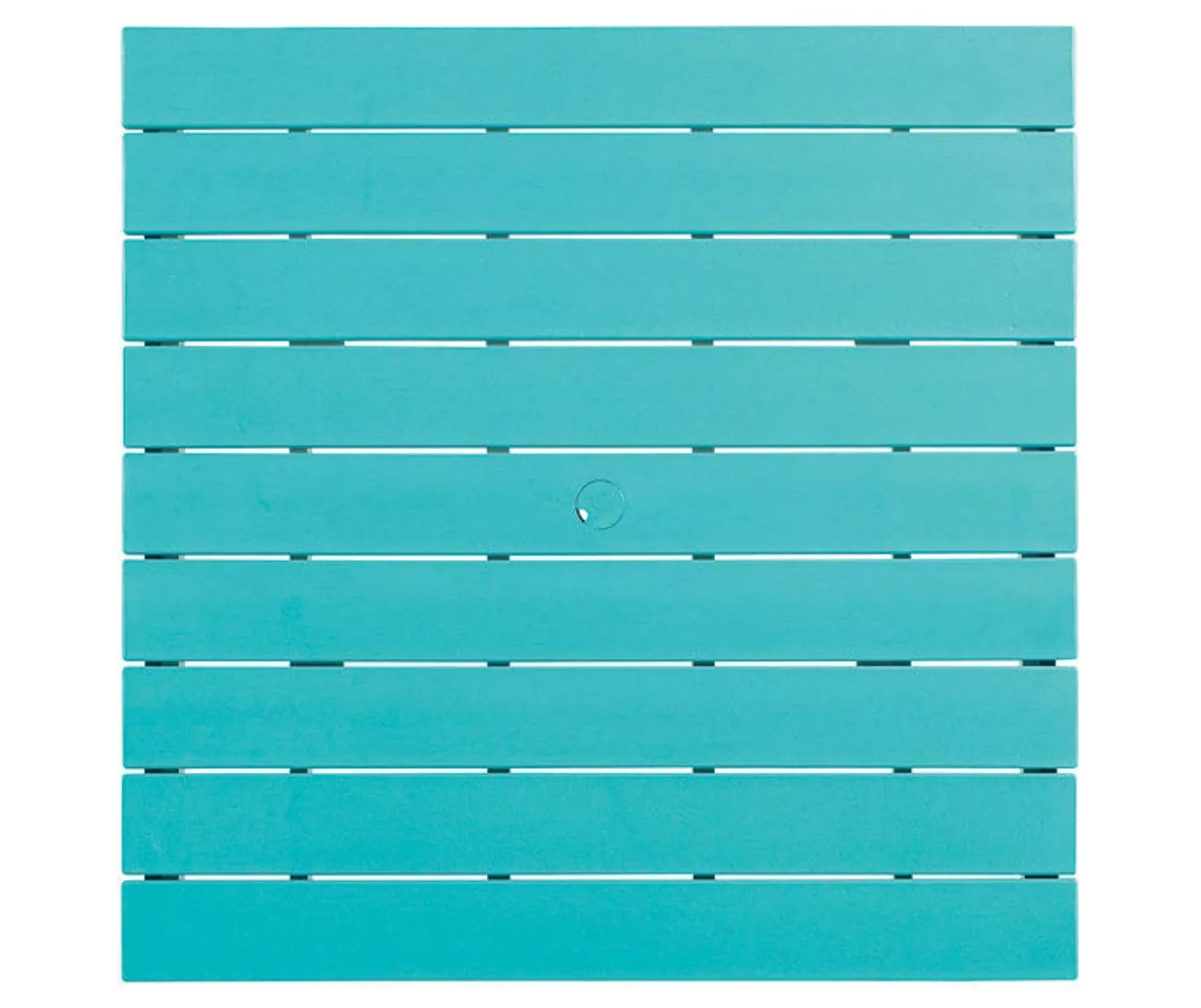 - Slat-style top with center hole for an umbrella