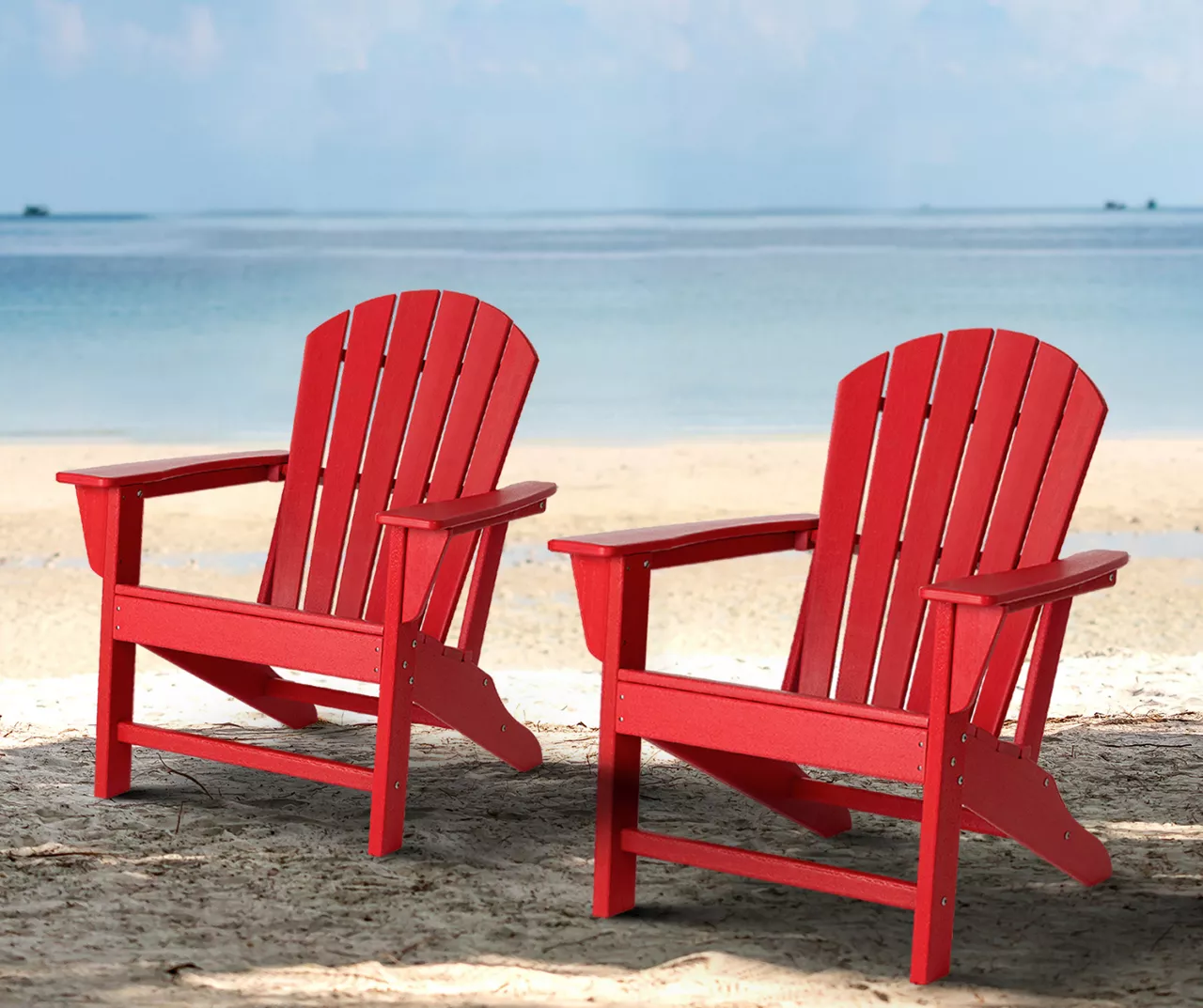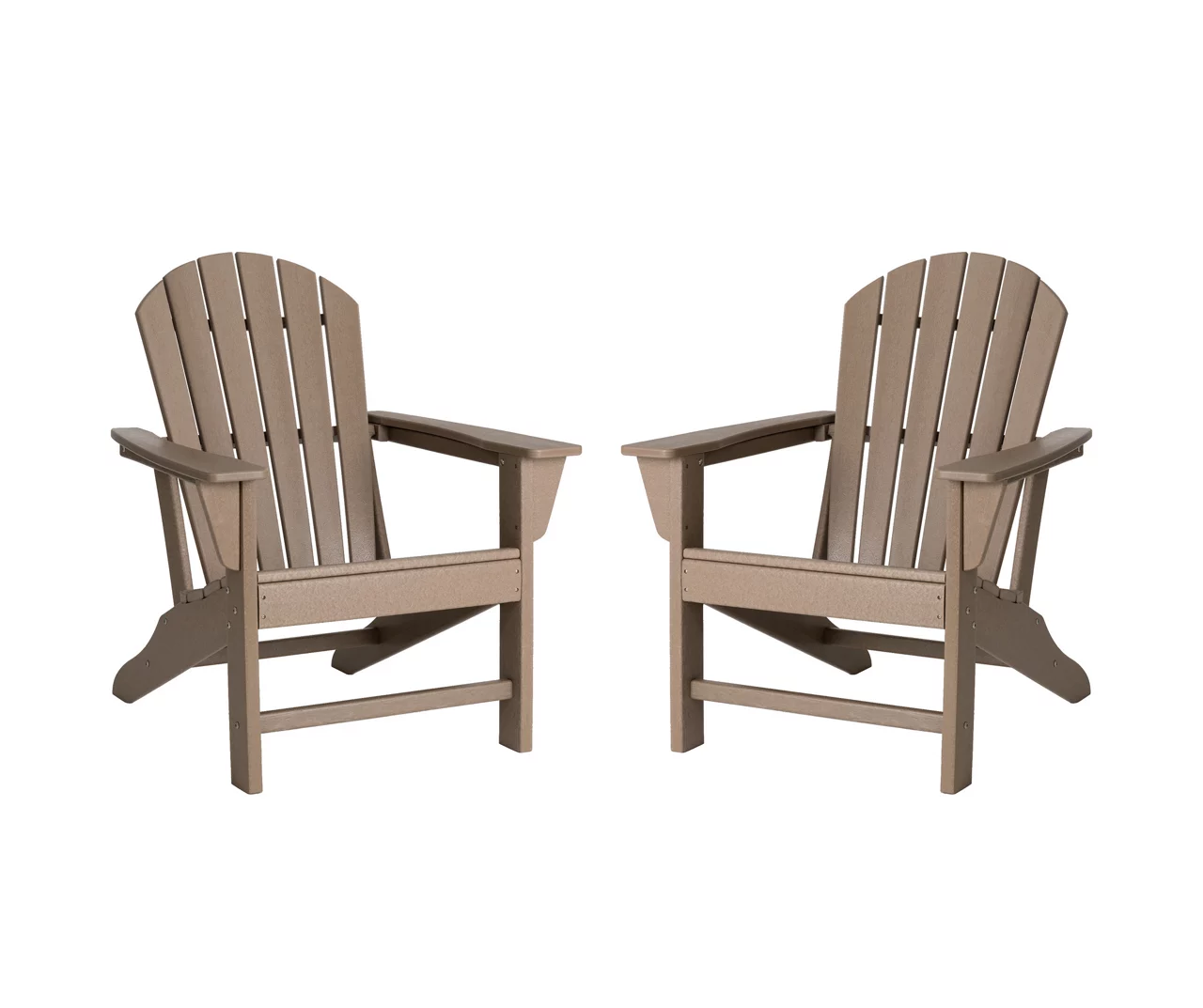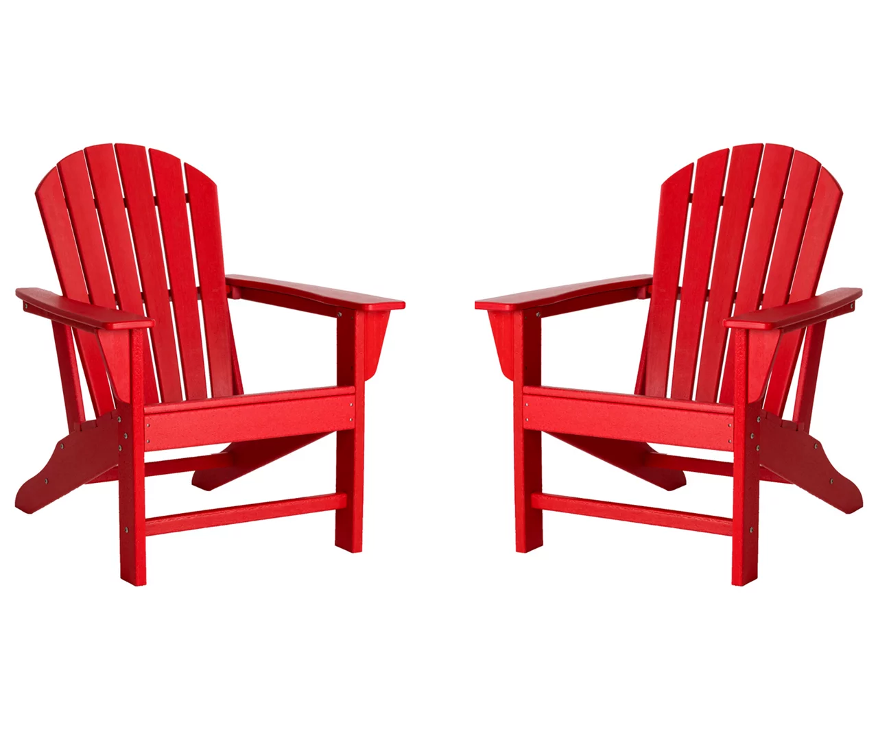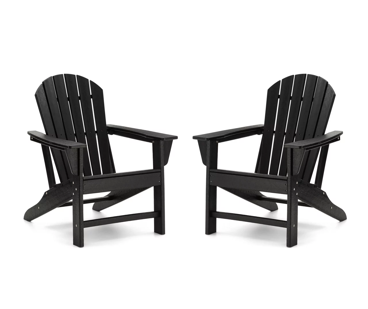 This set of two Adirondack chairs lets you enjoy casual conversations and happy hours with friends in your outdoor space. Each chair is constructed of durable and all-weather resistant high density polyethylene, making them easy to clean with little maintenance. Slanted seating and full backs hug you in comfort as extra-wide paddle armrests are at the ready to hold a drink. This versatile Adirondack chair set is perfect for your patio, porch, poolside, garden, backyard or any other outdoor space!