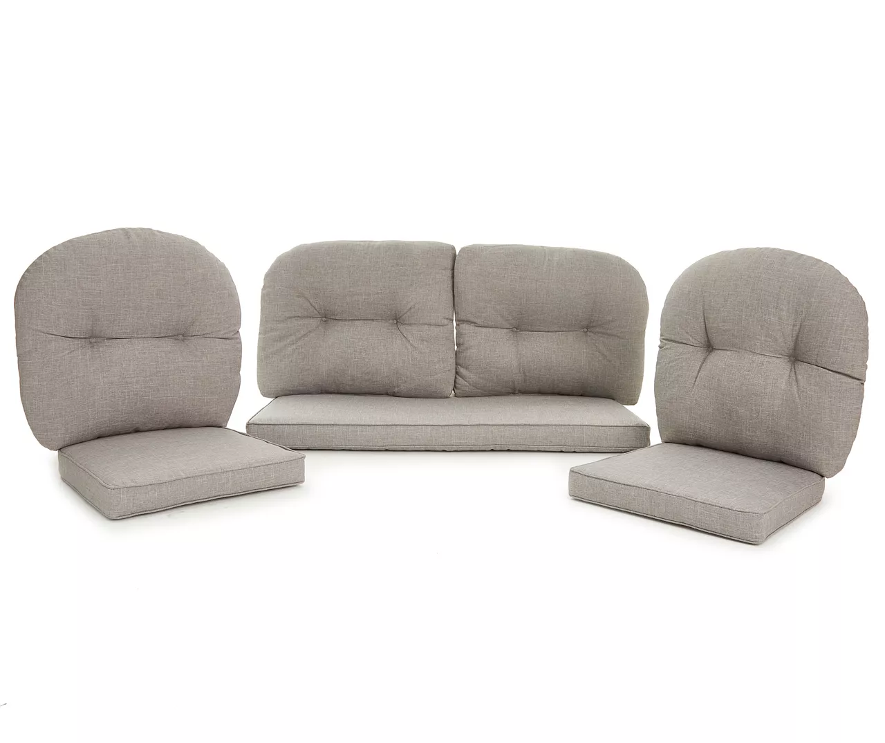 - Includes 2 – chair seat cushions, 2 – chair back cushions, 2 – settee back cushions and 1 – settee seat cushion