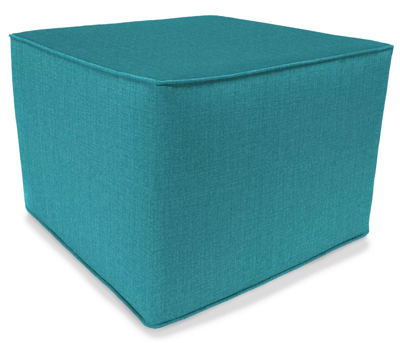 Add wonderful color to your outdoor space using this teal pouf ottoman. Made with spun polyester fabric for prolong use outdoors, its square shape features a boxed edge design with matching welt for a tailored look on your porch, patio or deck. Filled with foam for added comfort, it’s perfect for using as a place to rest your feet or a comfy extra seat.