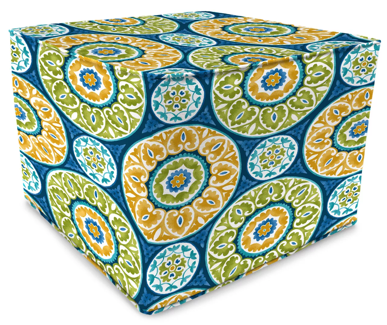 - Square-shaped pouf ottoman perfect for an outdoor space