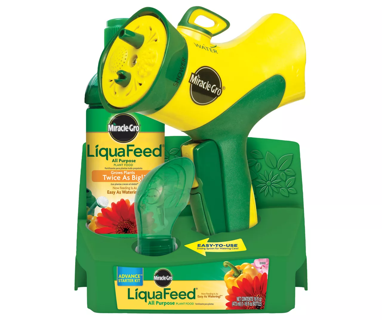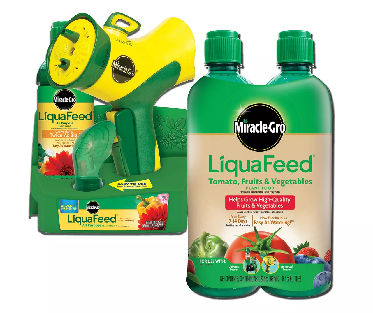 - Includes 1 bottle of Miracle-Gro LiquaFeed All Purpose Plant Food, 2 bottles of LiquaFeed Tomato, Fruits & Vegetable Plant Food and 1 LiquaFeed garden feeder