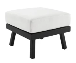 Kick up your feet and relax year round with this outdoor ottoman. Constructed of aluminum for a sturdy base that’s easy to transport, the black powder coated frame is also rust resistant. Additionally, the cushions are upholstered in black Sunbrella fabric that is fade, stain and mold resistant, so you can enjoy this piece outside for years to come.