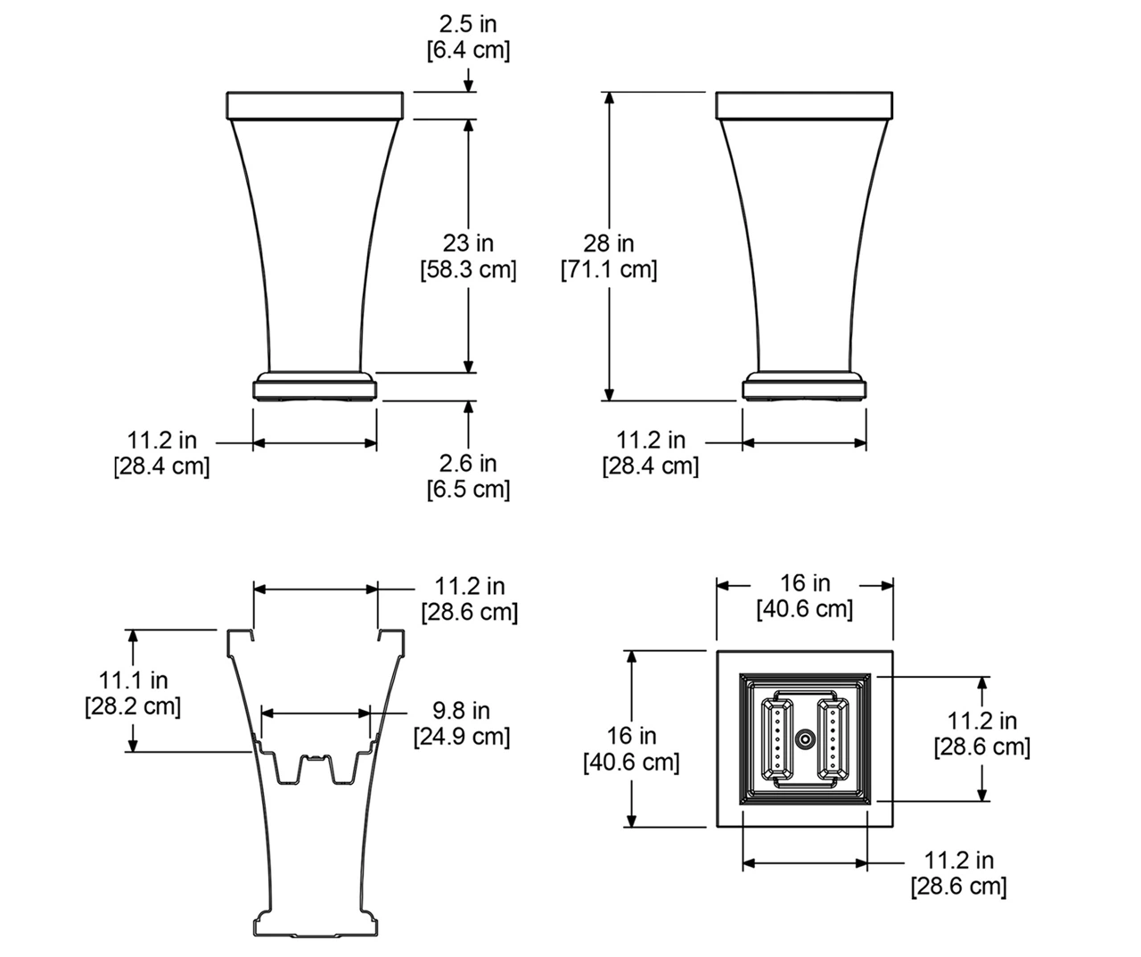 - Drainage holes can be pre-drilled by customer depending on desired use of the planter