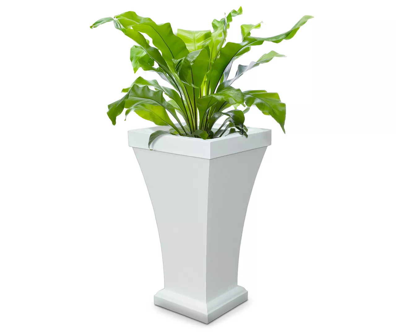 Create an air of elegance on any porch or patio with this beautiful tall and modern Bordeaux planter in crisp white. It is a gorgeous addition to any patio, deck or front entrance. It has a self-watering tray that makes it easy to nurture the plants and flowers. Your home will stand out in style with this finishing touch.