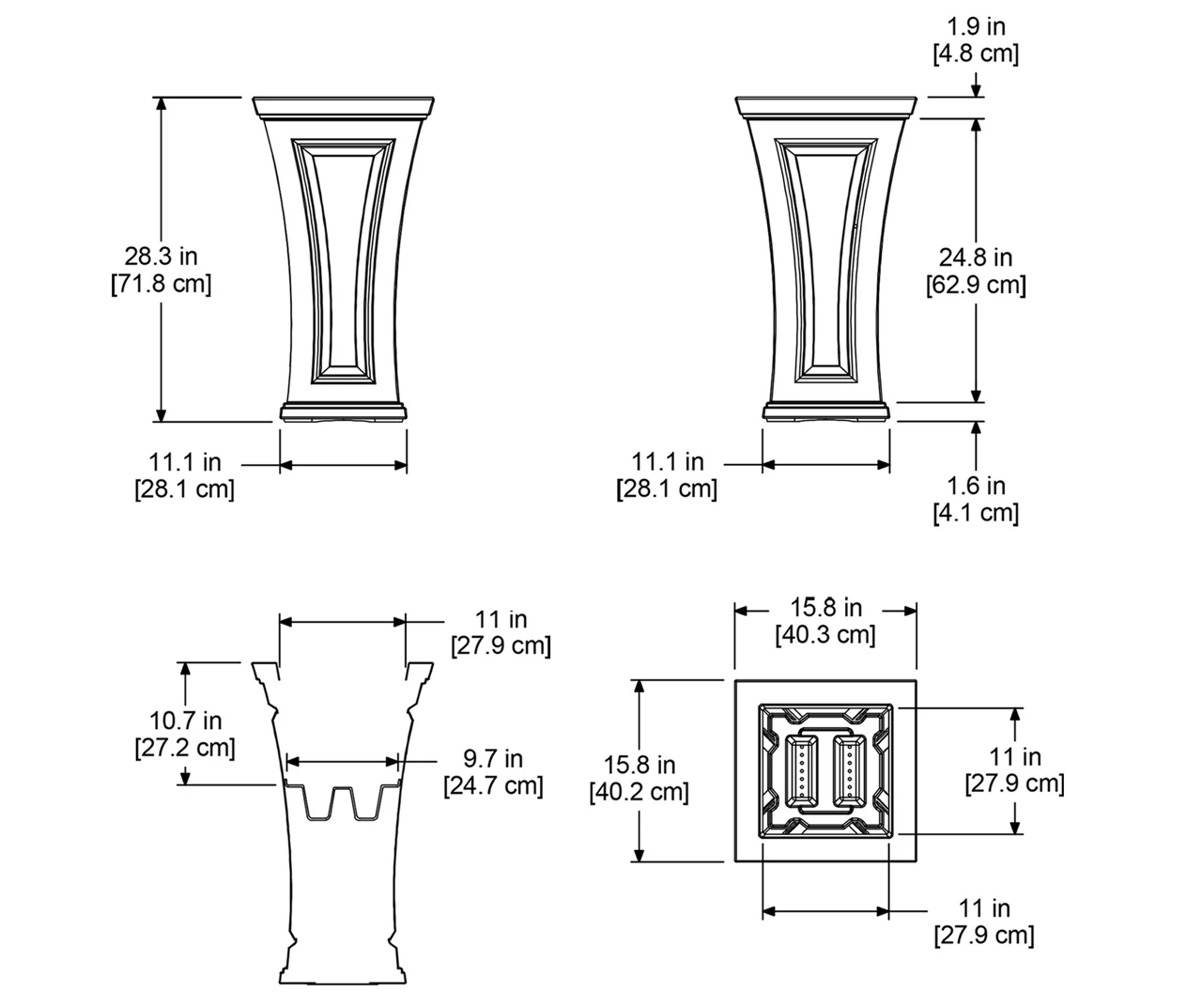 - Drainage holes to be pre-drilled by customer depending on desired use of the planter