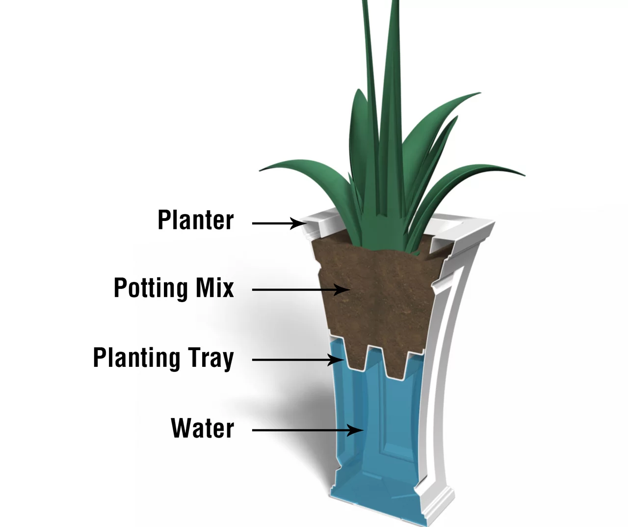 - Self watering tray insert creates a sub-irrigation water system and encourages root growth