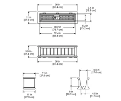 - Includes 3 – wall mount brackets with a black powder coated finish