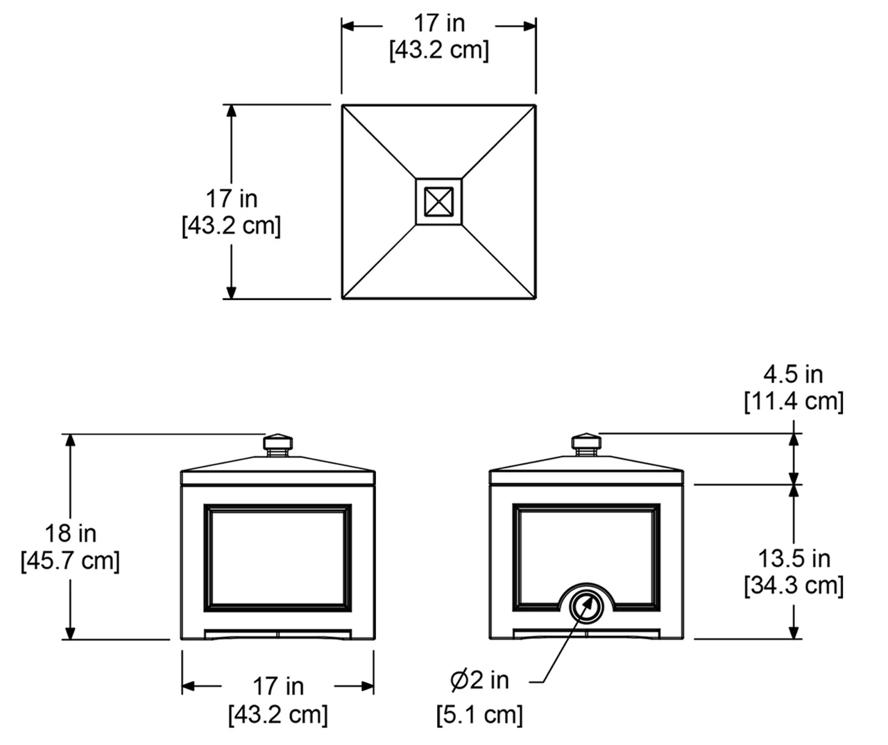 - Hole of 2″ cut in back of bin to feed garden hose through