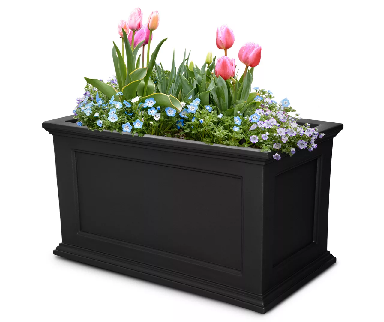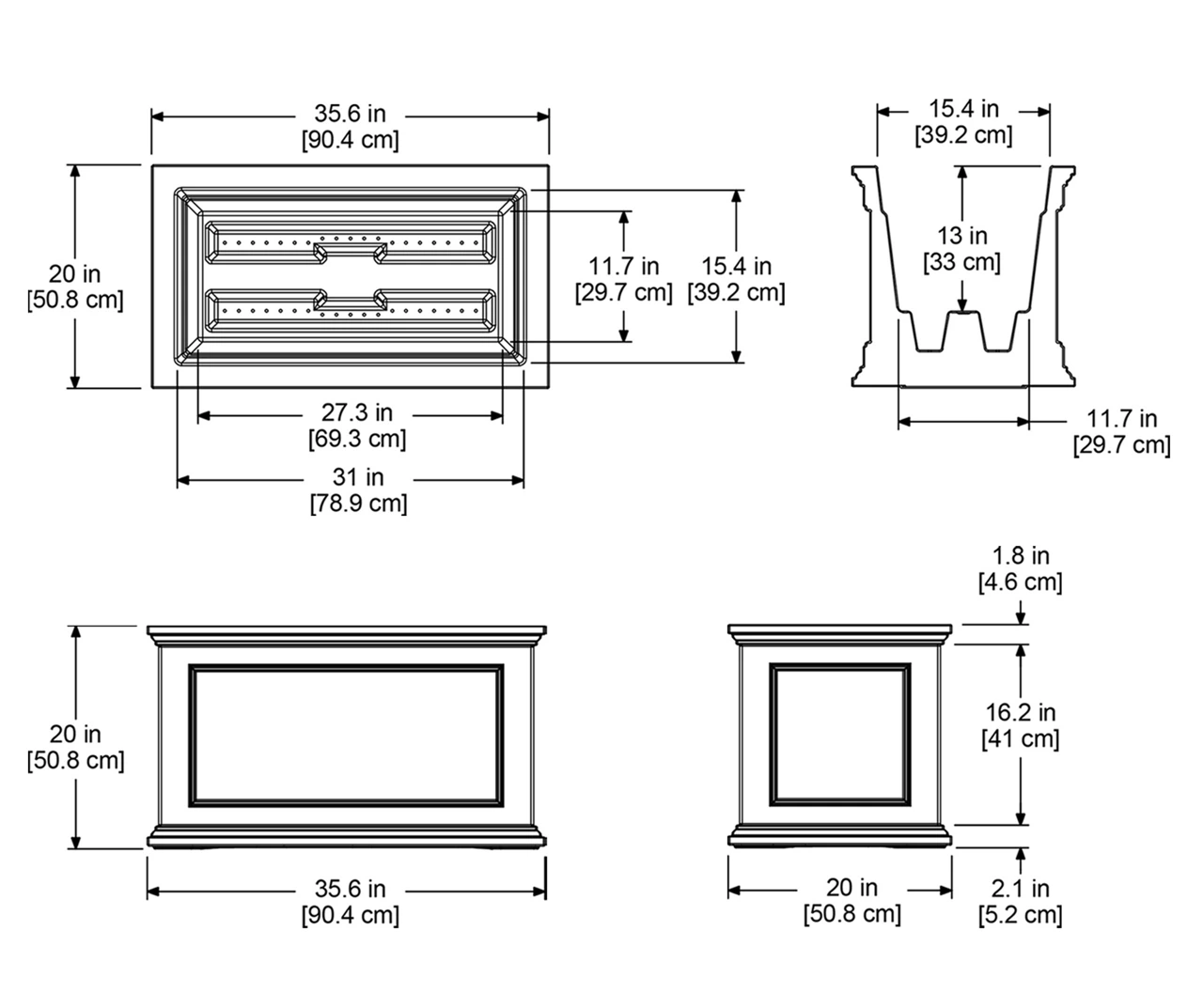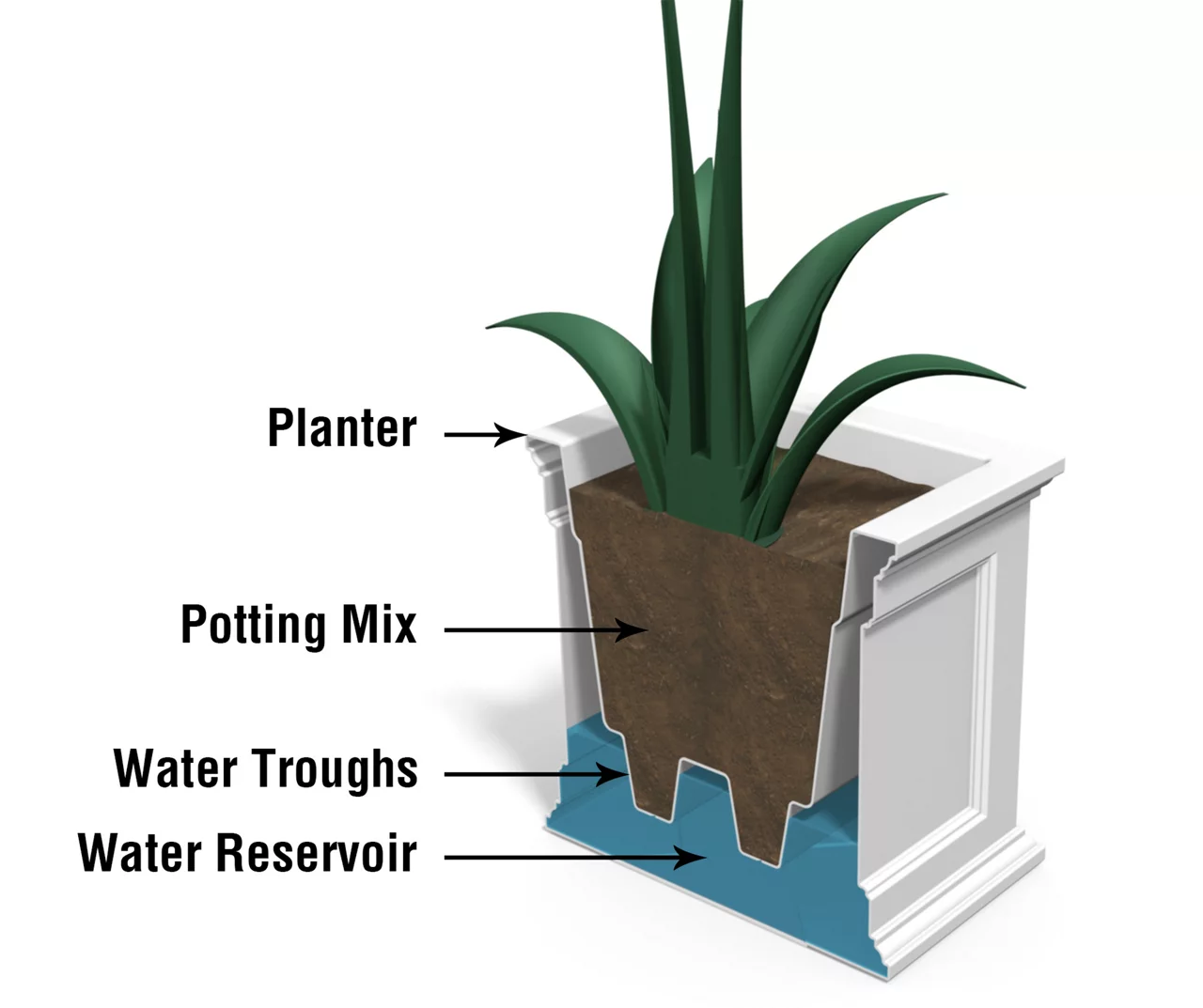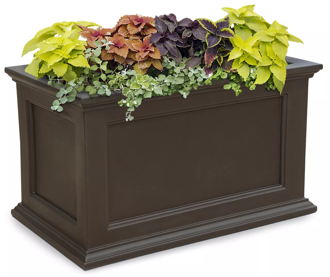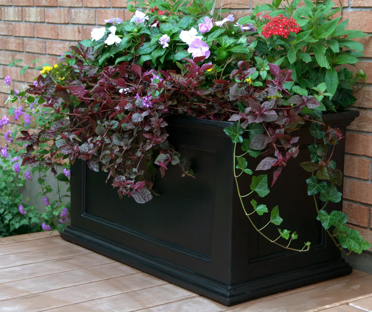 Have the look of wood without the upkeep with this high-grade polyethylene planter. Long-lasting beauty, durability and quality. Built-in water reservoir encourages healthy plant growth by allowing plants to practically water themselves.