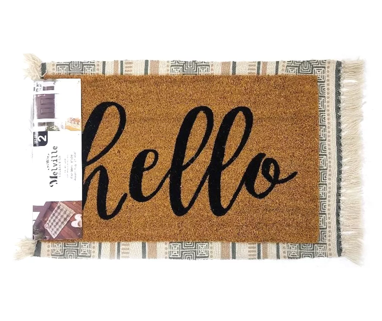 Designed to complement each other, this lovely rug and mat set from the Melville collection adds a spot of visual interest to your doorway or other areas of the home. The welcoming coir doormat can be layered over the accent rug for a dimensional design, or the two can be used separately for coordinating style in your home.