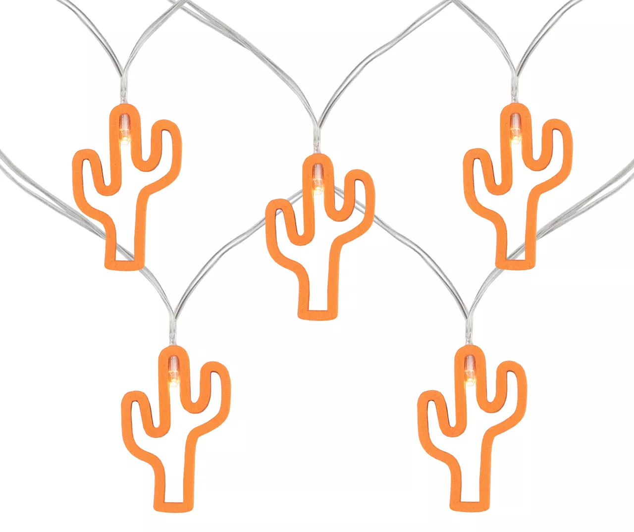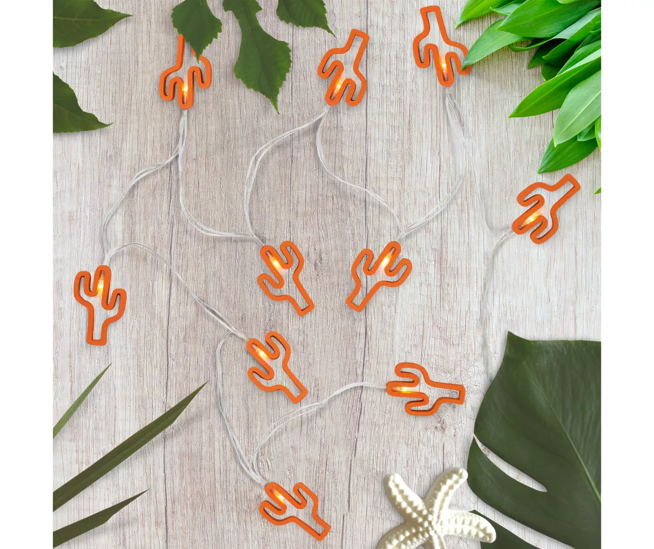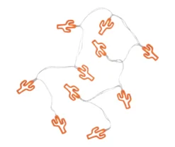 Enjoy your summer night parties with these fun lights! Light up your space with these adorable orange cactus-shaped lights. These battery-powered lights can hang from more places without the need of an outlet. Perfect for adding some Southwest magic to a wreath, tree, garland or add to your lanterns and vases for some unique sparkle.