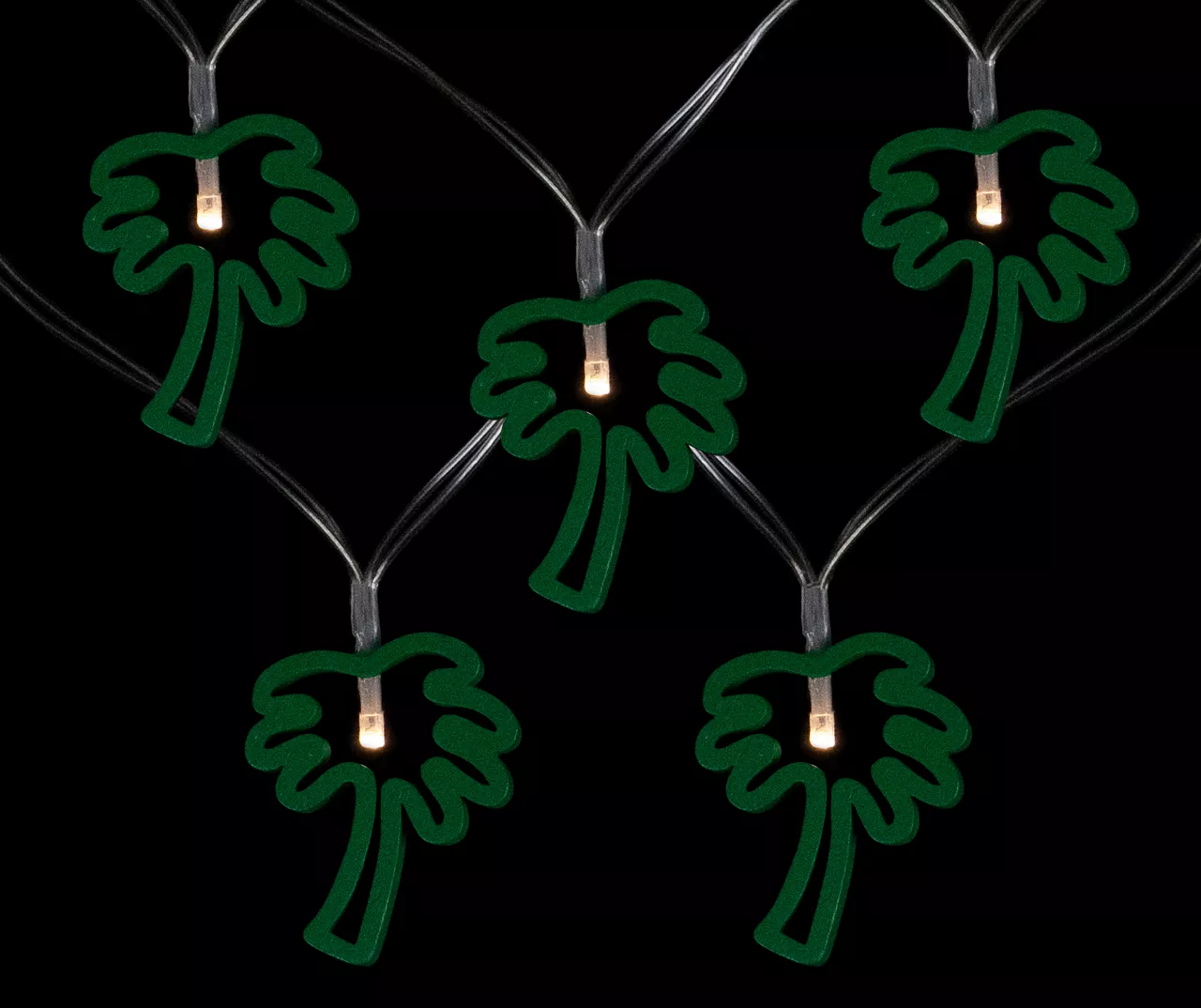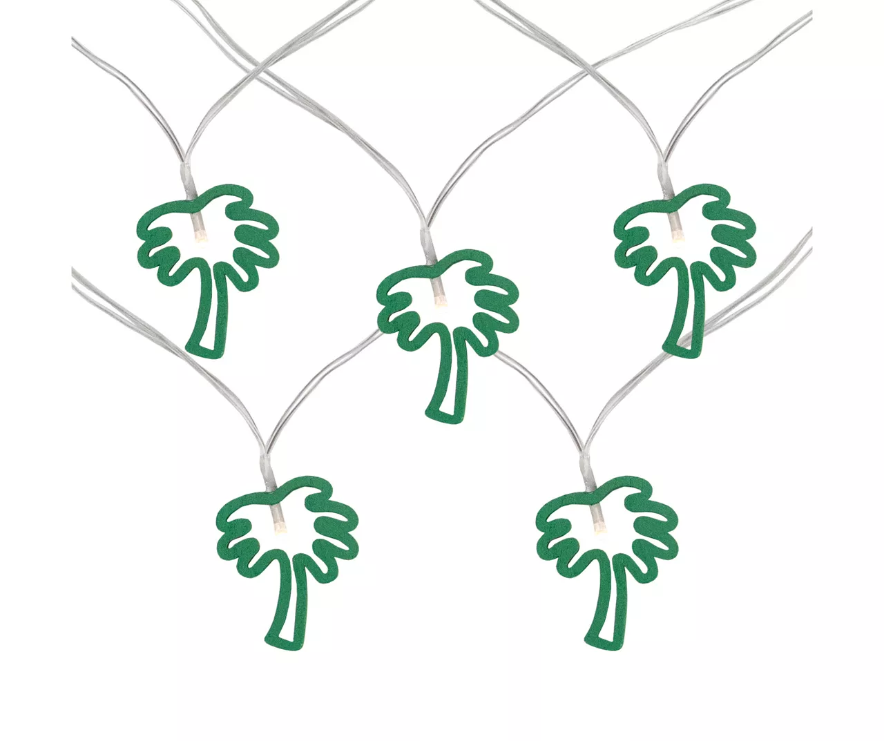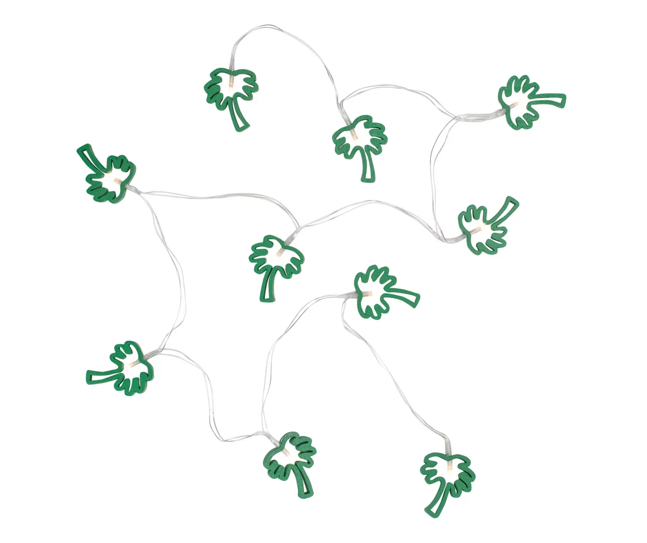 Light up your space with these adorable green palm tree-shaped lights. These battery-powered lights can hang from more places without the need of an outlet. Perfect for adding some tropical magic to a wreath, tree, garland or add to your lanterns and vases for some unique sparkle.