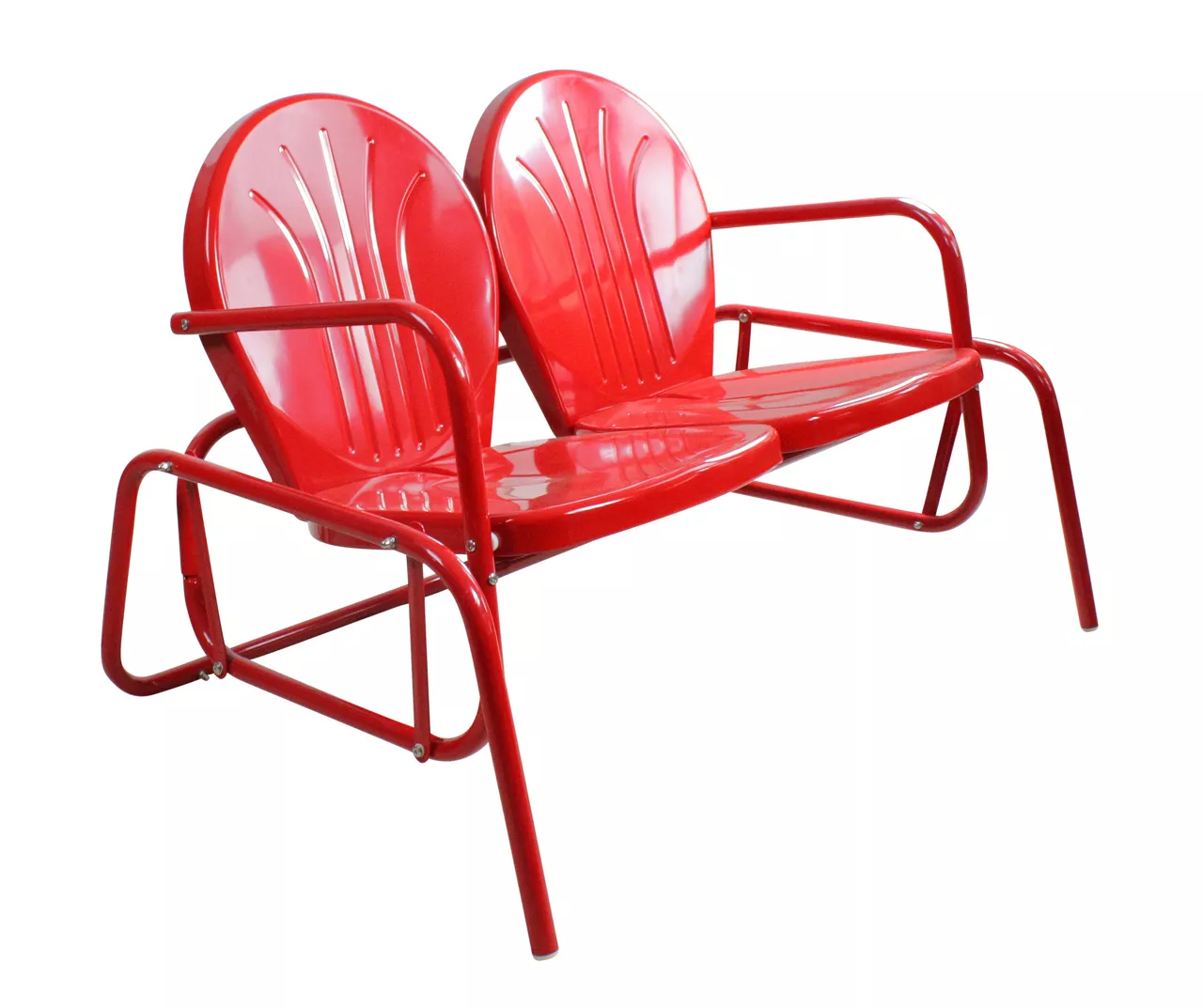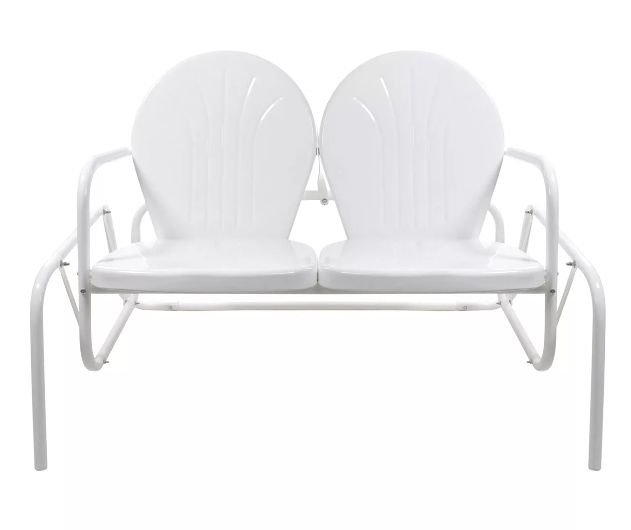 Bring a touch of the 1950s to your yard or porch with this vintage-style metal glider loveseat. With its weather-resistant powder-coated finish you will have years to enjoy this classic piece. Perfect for enjoying a glass of wine on the patio with family and friends or a good book by yourself.