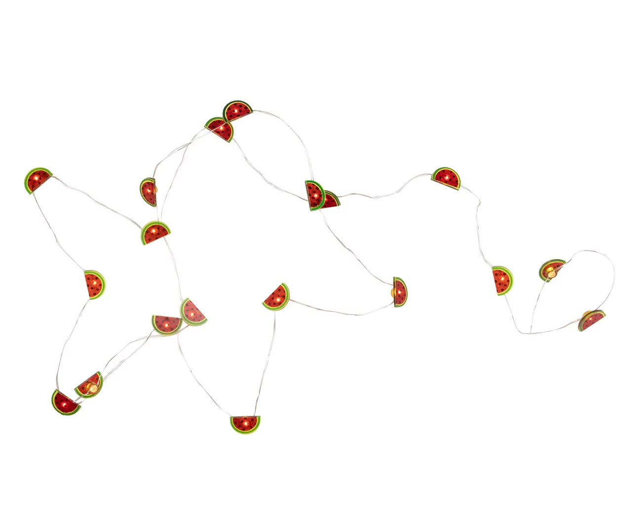 These small long-lasting red and green watermelon shaped LED wire fairy lights will induce personality to your decor. The ultra-slim pliable wire means that these lights are extremely versatile. The lights can be easily stretched and shaped to accommodate your decorating needs. Perfect for adding some holiday magic to a wreath, tree, garland or add to your lanterns and vases for some sparkle.