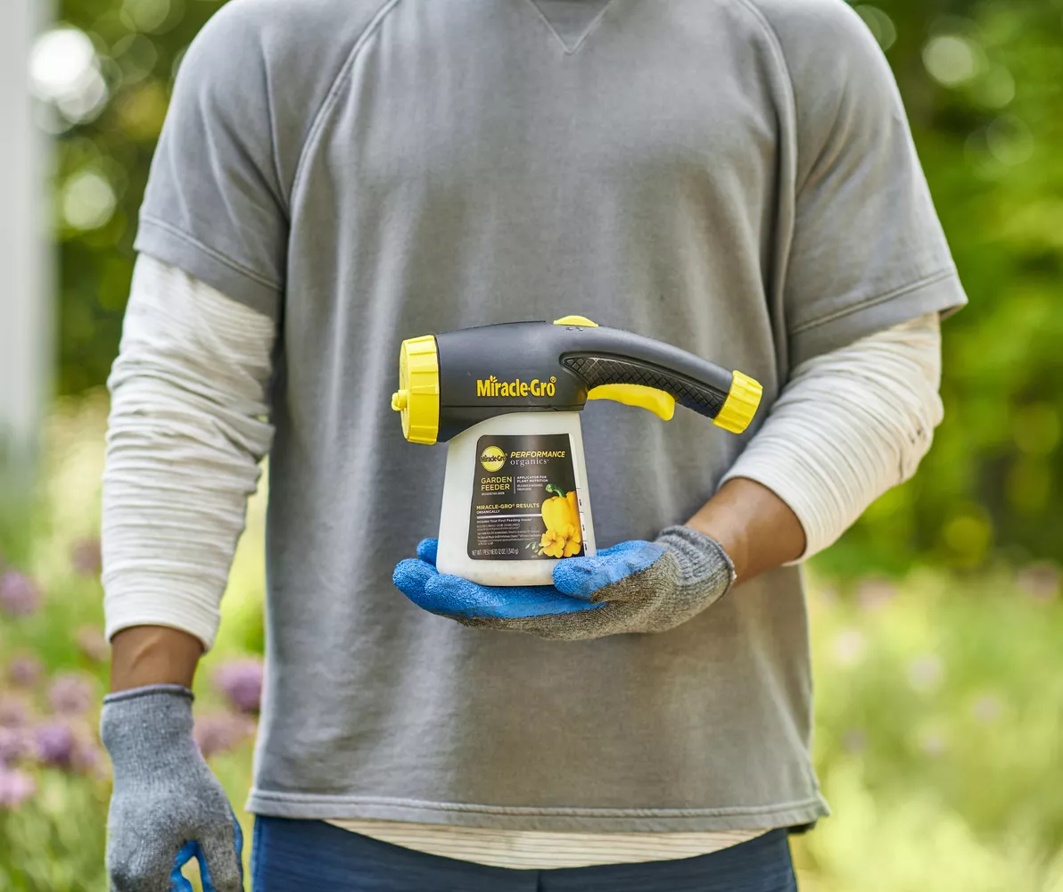 - Feeding your plants is easy with the Miracle-Gro Performance Organics Garden Feeder which attaches to any outdoor garden hose