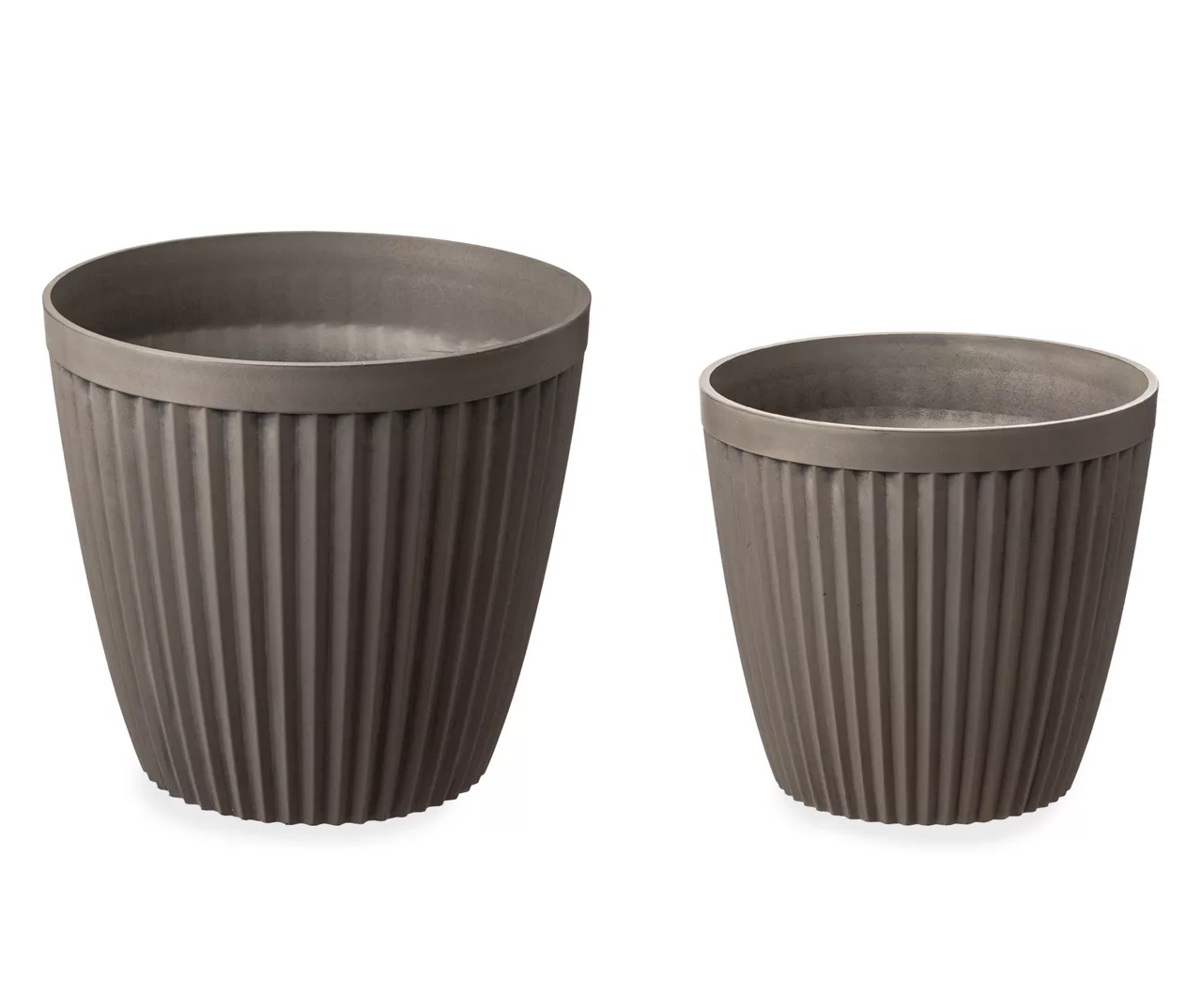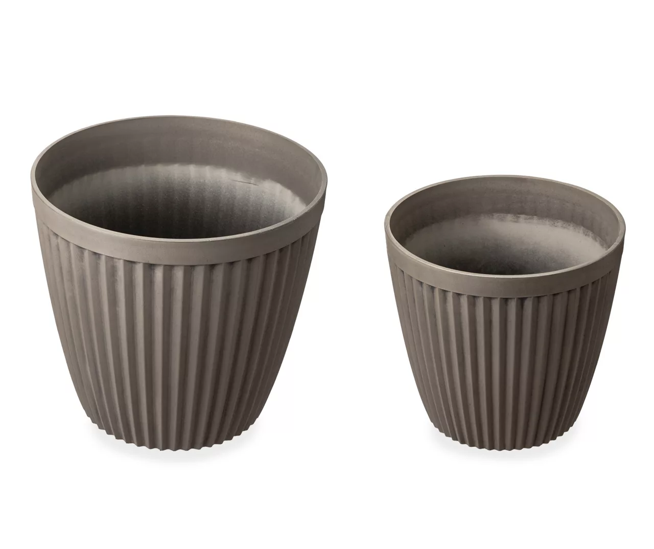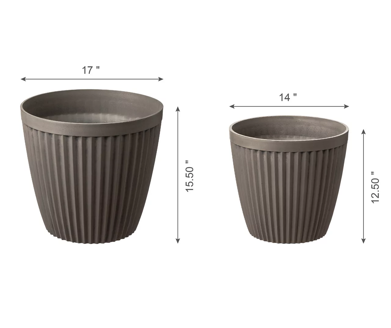 Create interest to your garden using these round planters. Each is made of 100% recyclable polyethylene, which is safe and healthy for indoor space and outdoor needs. The imitation concrete look with vertical striping adds artistry as these lightweight and durable planters resist fading and cracking from their UV protected constructions.