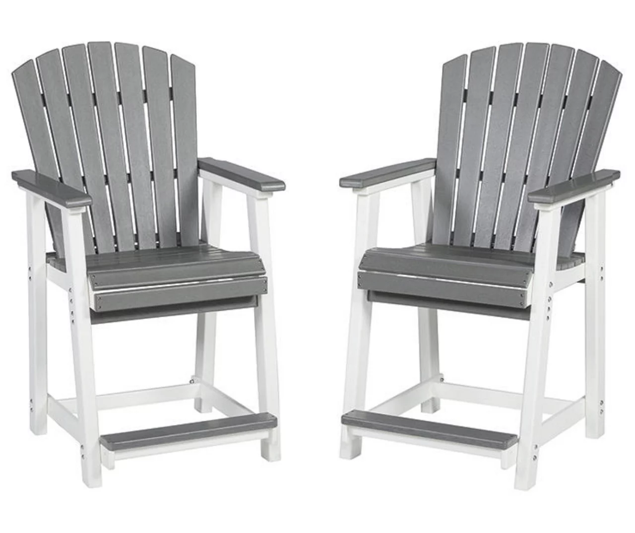 Raise the bar on outdoor living with this bar stool set. Crafted for style, comfort and Mega Tuff durability, the counter height stool caters with a standout two-tone look that pairs gorgeous gray and crisp white for twice the interest.