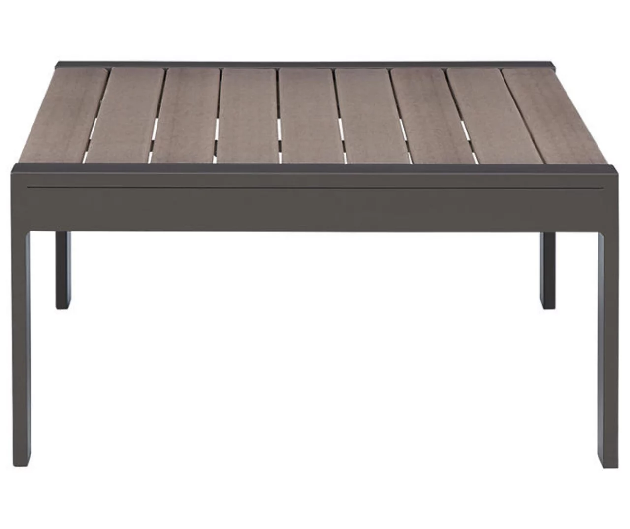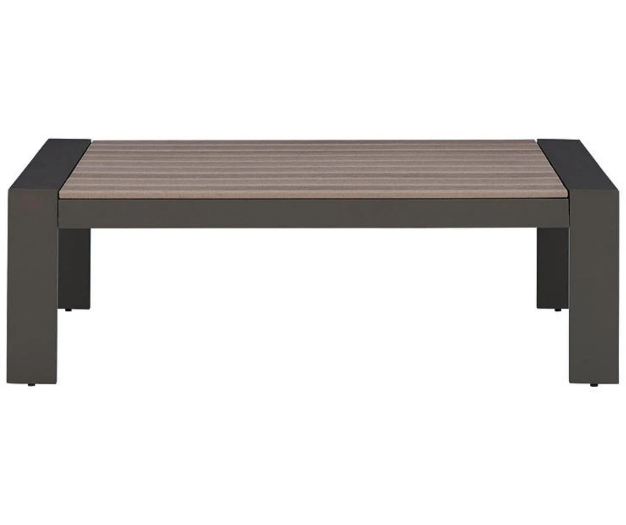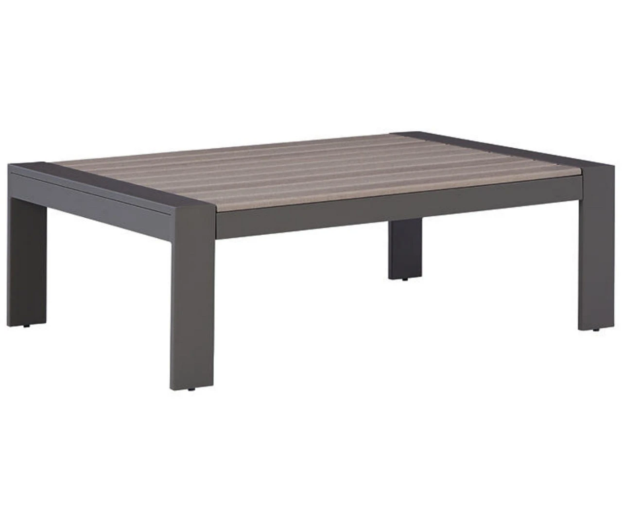 Natural neutrals are all the rage these days. Embrace the style trend with this outdoor coffee table. Crafted with a mix of aluminum and an HDPE material for exceptional durability and weather resistance, this table takes outdoor living to a whole new level.