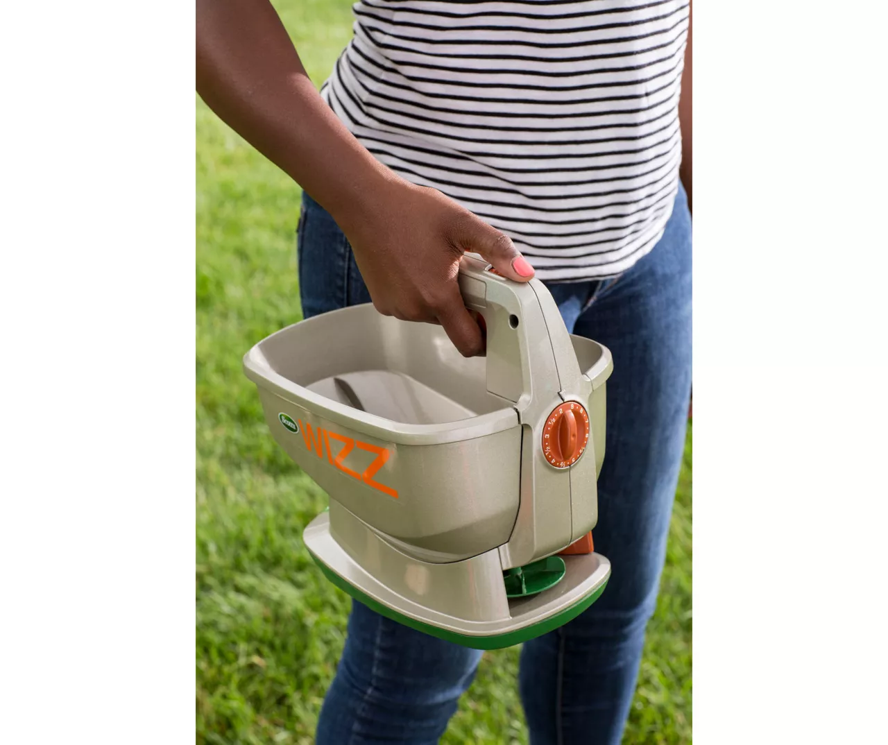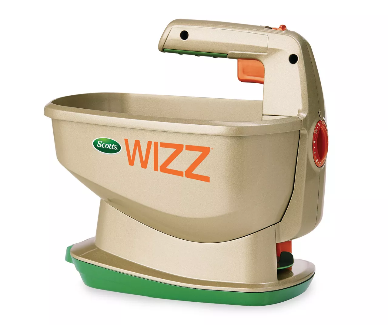 The battery-powered Scotts Wizz spreader is the quick and easy option when it comes to spreading. The Wizz holds up to 2,500 sq. ft. of Scotts lawn care products and features Scotts exclusive EdgeGuard and HandyLock technology. Use it year round to feed, seed and weed! EdgeGuard technology allows for 5 foot broadcast control. Our most advanced spreader yet, powered by 4 AA batteries with 23 settings for unbeatable accuracy. Perfect for lawn seed, fertilizer and weed control products